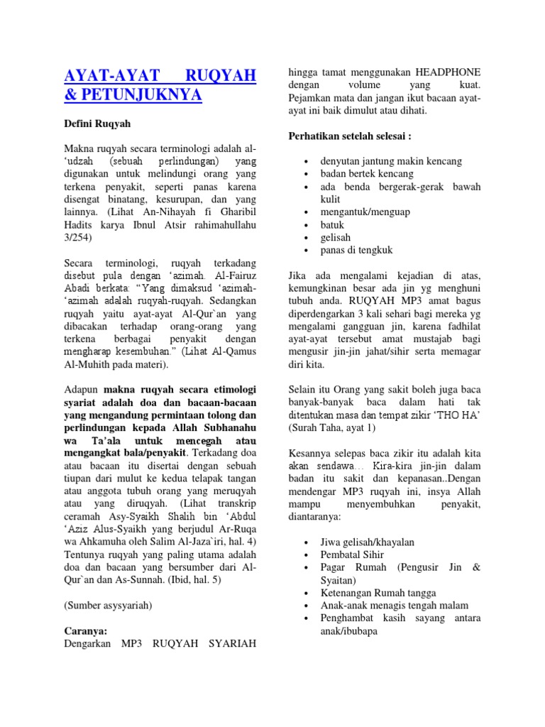 Ayat Ruqyah Untuk Penghancur Sihir Beserta Tata Cara Pelaksanaannya Dream Co Id from cdn.klimg.com Usia 35 tahun * banjir besar melanda mekah dan meruntuhkan dinding ka'abah. Pernah merasakan sakit baik sakit fisik maupun non fisik. * mas kahwin baginda kepada khadijah adalah sebanyak 500 dirham.